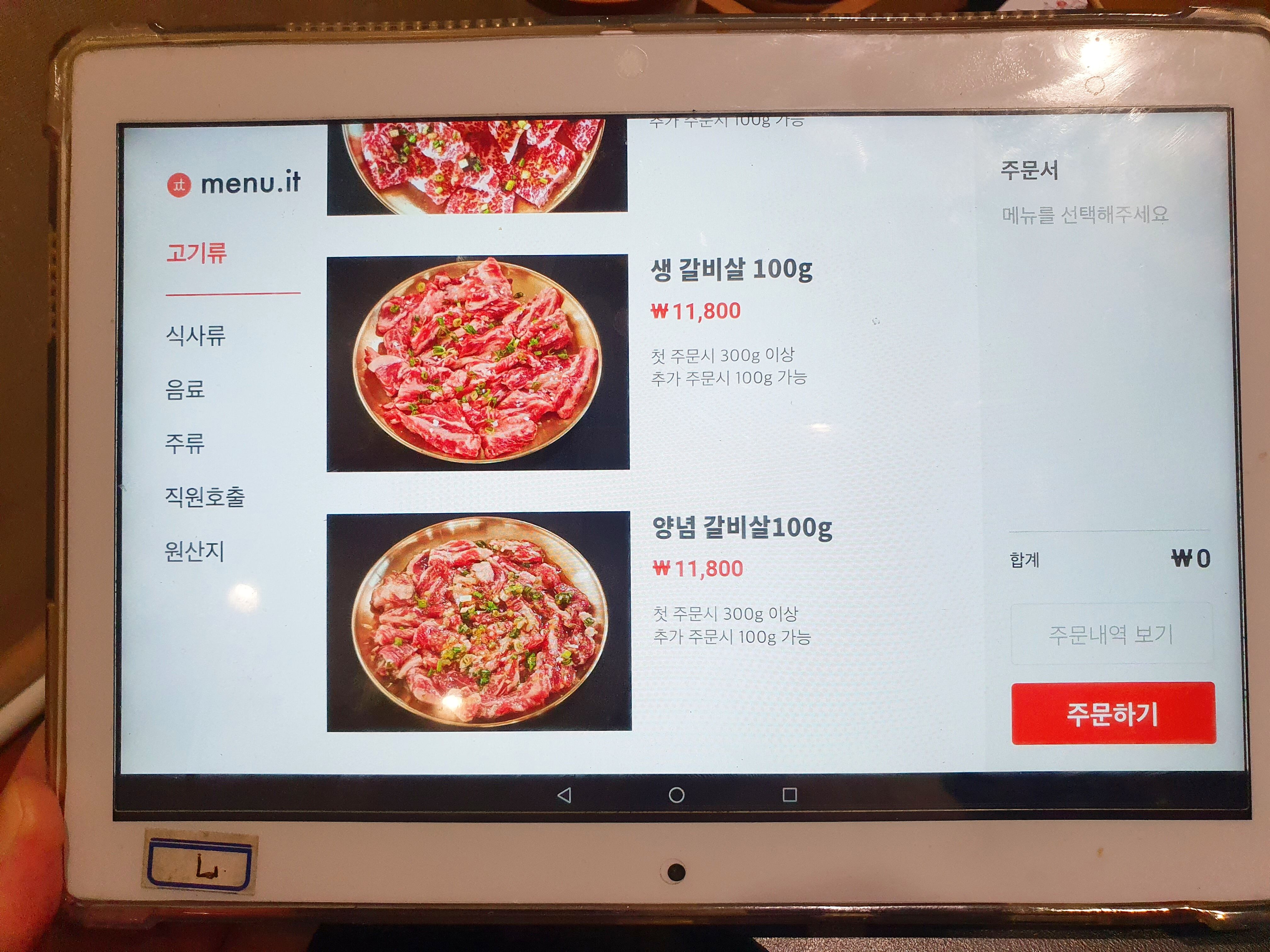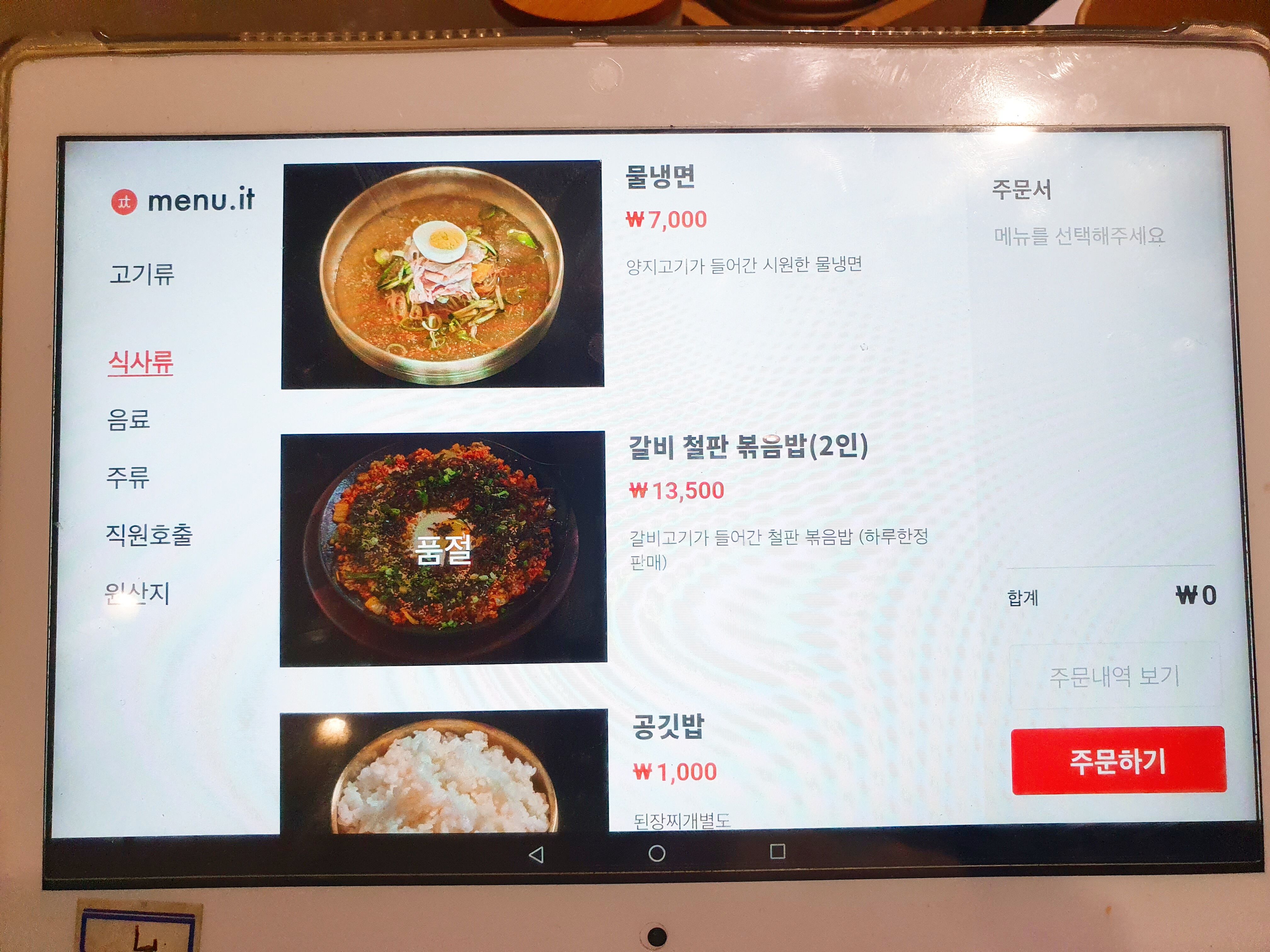 위 사진처럼 테이블마다 패드를 하나씩 나눠 주는데 거기에있는 메뉴판으로 주문을 해요!