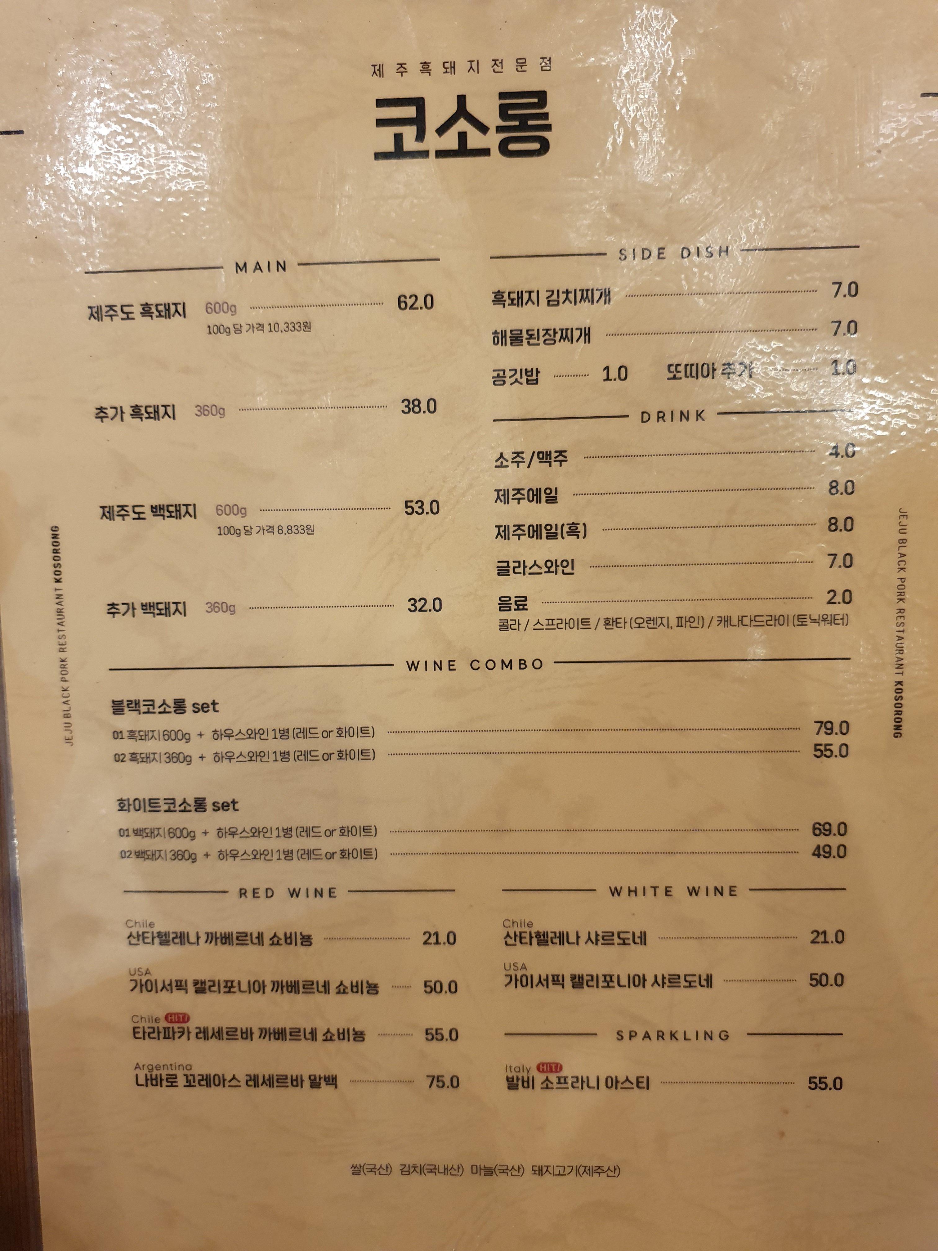 대기후 자리 안내받으면 메뉴판이 놓여 있습니다.